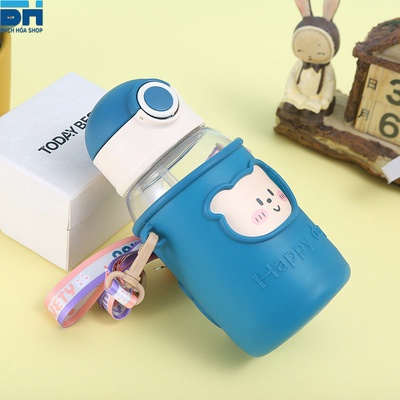 BÌNH NƯỚC 600ML CHO BÉ KÈM DÂY ĐEO TIỆN LỢI, TẶNG KÈM STICKER 2D, 3D XINH XẮN - BH KIDS